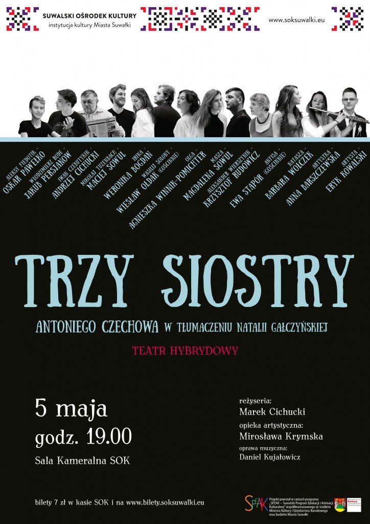 Spektakl na podstawie „Trzech sióstr” autorstwa Antoniego Czechowa (w tłumaczeniu Natalii Gałczyńskiej), wyreżyserowany przez Marka Cichuckiego, przy współpracy Mirosławy Krymskiej. Na scenie aktorzy Teatru Hybrydowego działającego w prowadzonej przez Mirosławę Krymską Pracowni Przytulisko WyobraźniSuwalskiego Ośrodka Kultury.