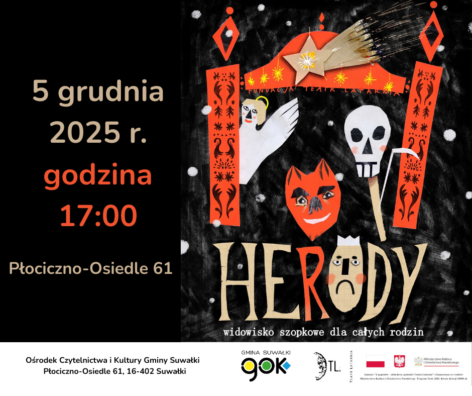 Ośrodek Czytelnictwa i Kultury Gminy Suwałki oraz Teatr Latarnia serdecznie zapraszają na widowisko szopkowe "Herody".