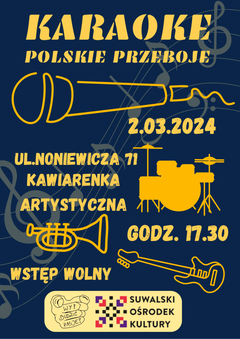 Kolejny wieczór karaoke w Kawiarence Artystycznej, zapraszamy 2 marca 2024 r. o godzinie 17.30. Motywem przewodnim będą polskie przeboje. Zapraszamy!
