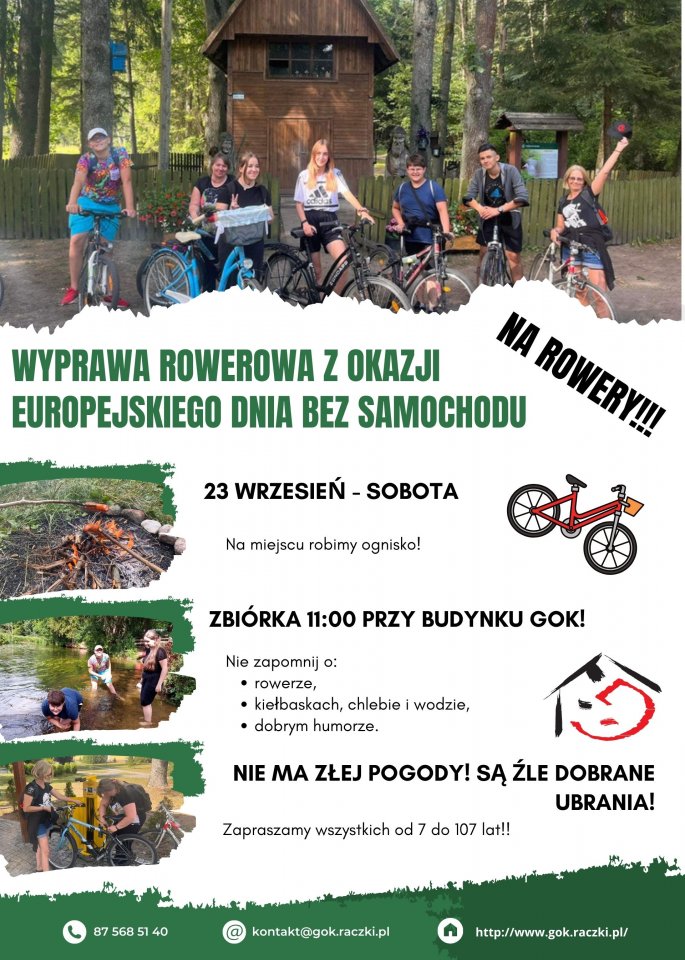 Gminny Ośrodek Kultury w Raczkach serdecznie zaprasza do udziału w Wyprawie Rowerowej z Okazji Dnia bez Samochodu.