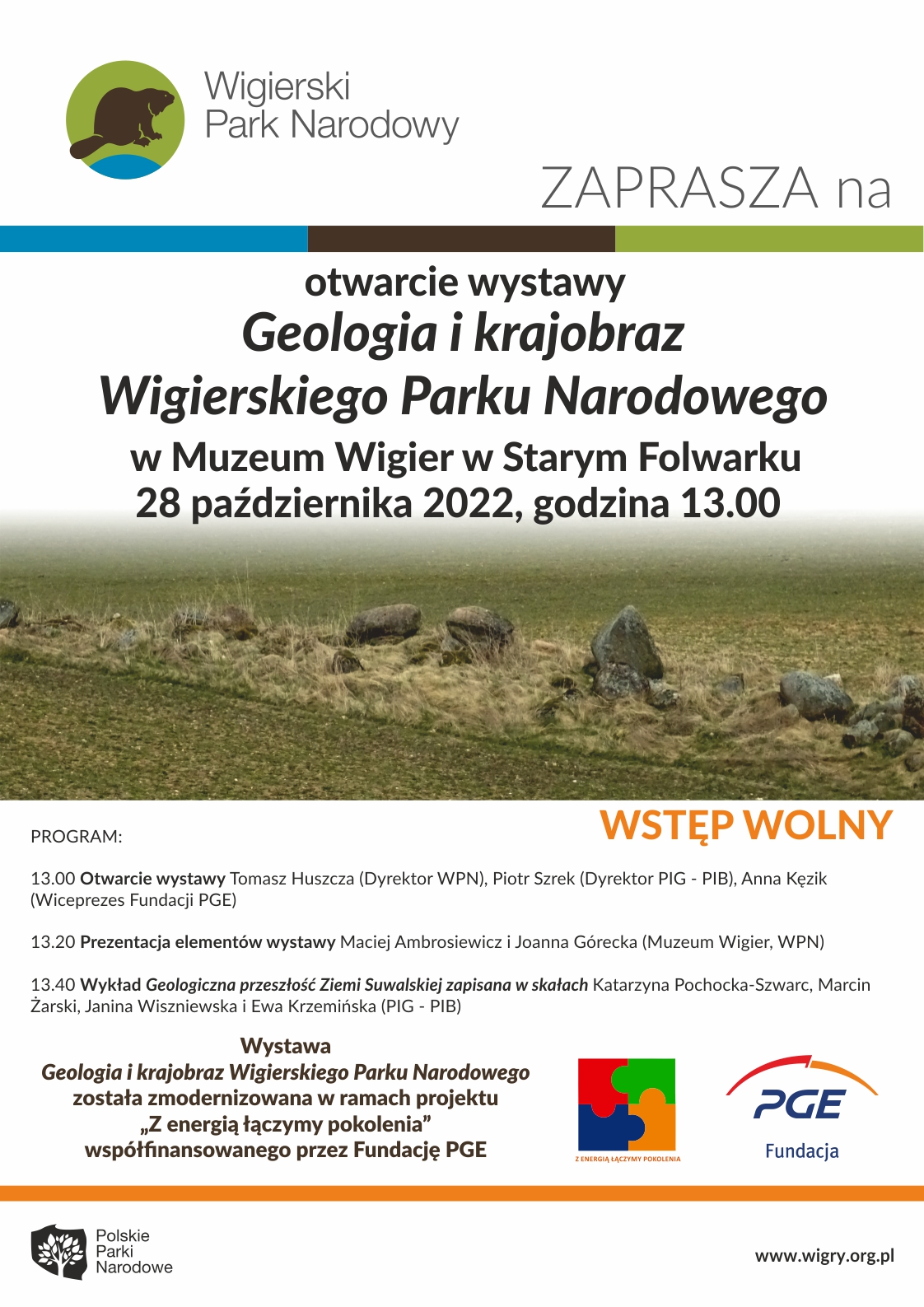28 października 2022 roku, zapraszamy na otwarcie wystawy "Geologia i krajobraz Wigierskiego Parku Narodowego" w Muzeum Wigier w Starym Folwarku