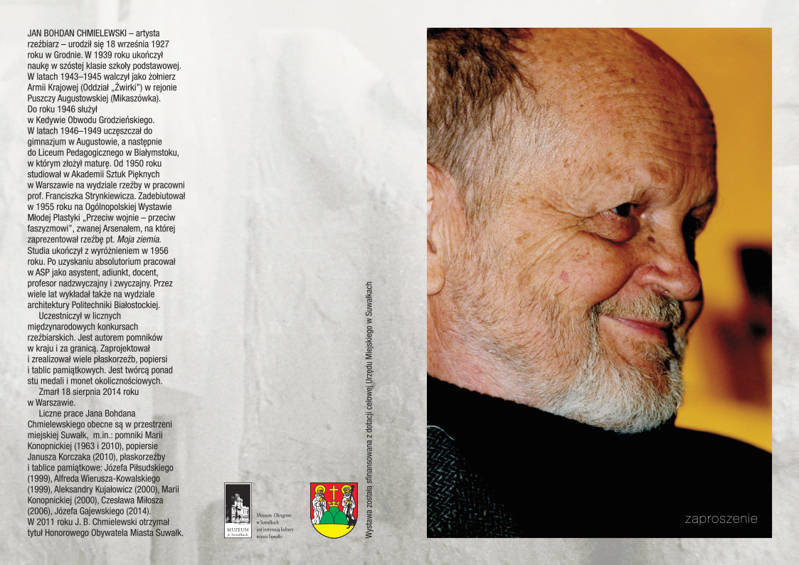 Prezydent Miasta Suwałk Czesław Renkiewicz oraz Dyrektor Muzeum Okręgowego w Suwałkach Jerzy Brzozowski zapraszają na otwarcie wystawy „Jan Bohdan Chmielewski in memoriam".