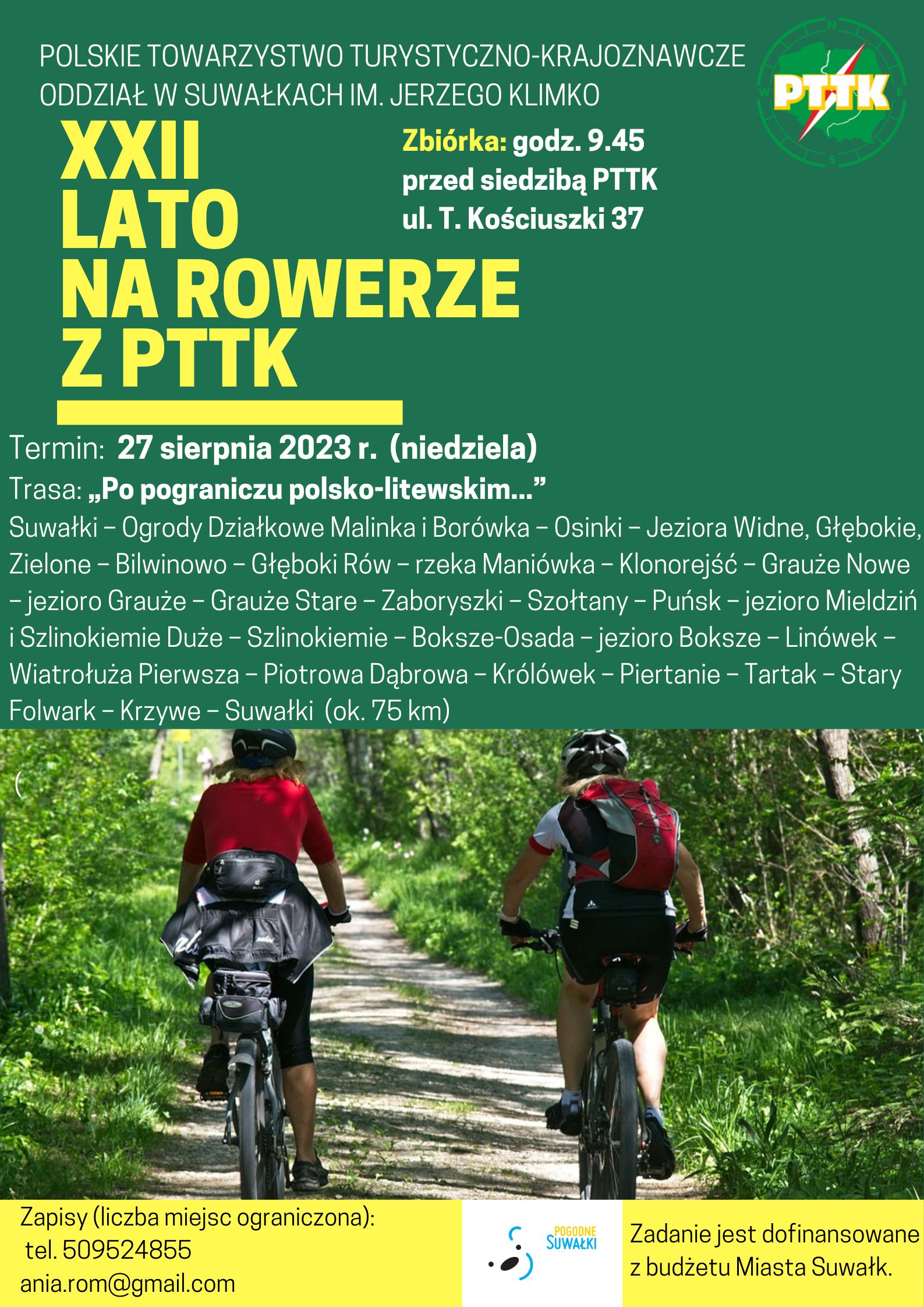 Polskie Towarzystwo Turystyczno-Krajoznawcze Oddział w Suwałkach im. Jerzego Klimko zaprasza na jednodniowy rajd rowerowy, którego celem jest popularyzacja aktywnego wypoczynku letniego.