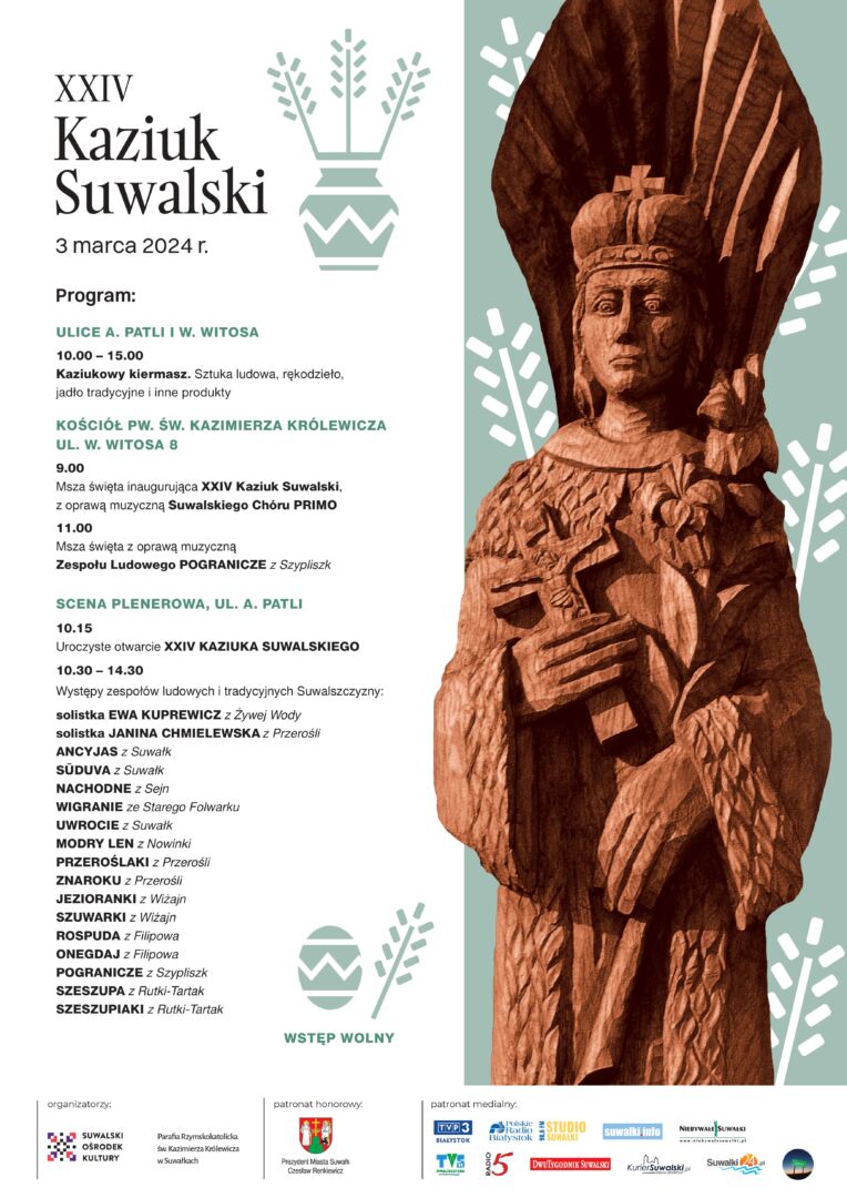Zapraszamy na XXIV Kaziuka Suwalskiego już 3 marca 2024! Impreza plenerowa odbędzie się jak co roku na ul. A. Patli i W. Witosa nieopodal kościoła pw. Kazimierza Królewicza.