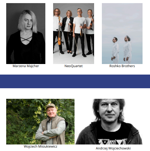Muzyka przede wszystkim Roshko Brothers, czyli Jan i Adam Roszkowscy, to braterski duet muzyczny, który przenosi piękno suwalskiej natury i melancholię do swojej twórczości. Ich muzyka, łącząca elektronikę z czarem wiolonczeli, tworzy filmowe pejzaże dźwiękowe, inspirowane krajobrazami Suwalszczyzny. Podczas festiwalu usłyszymy utwory z nadchodzącej płyty River of Time, której premiera zaplanowana jest na styczeń 2025 roku. NeoQuartet, znany z wykonywania współczesnej muzyki klasycznej, wprowadzi publiczność w świat fizyki kwantowej. W ich wykonaniu usłyszymy cykl Muzyka Kwantowa skomponowany przez Marzenę Majcher. Zespół tworzą Karolina Piątkowska-Nowicka, Paweł Kapica, Michał Markiewicz i Krzysztof Pawłowski.