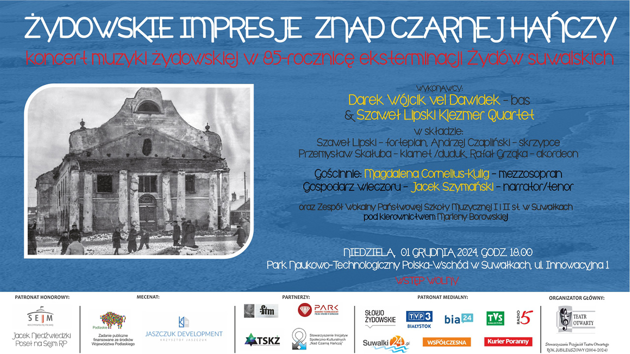 „Żydowskie impresje znad Czarnej Hańczy” – koncert muzyki żydowskiej w 85.rocznicę eksterminacji Żydów suwalskich wg. pomysłu i w reżyserii wybitnego gdańskiego artysty Dariusza S. Wójcika