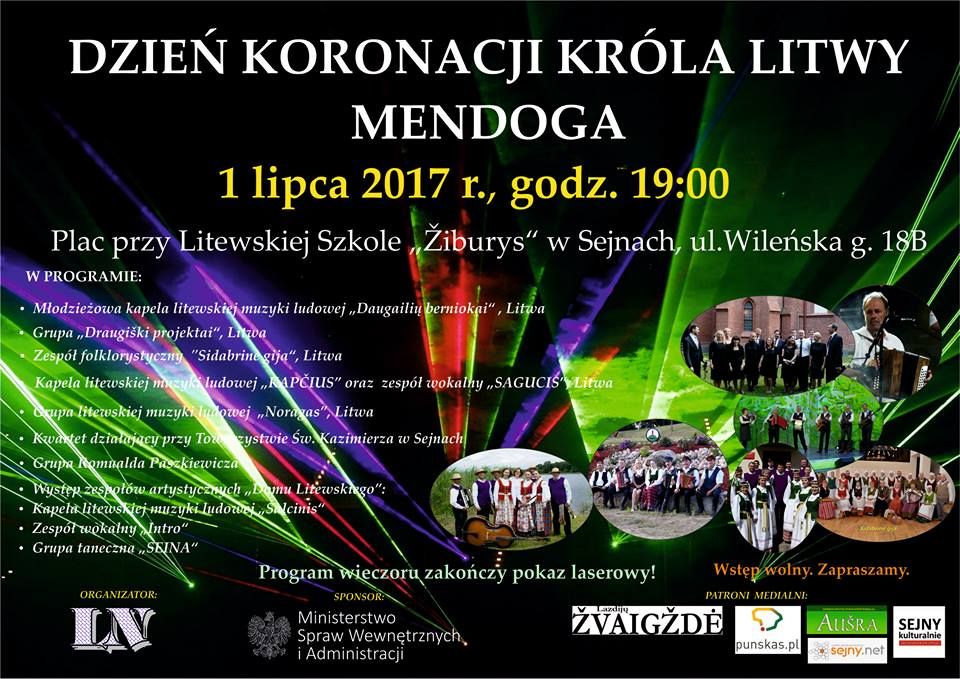 W tym roku duża impreza z okazji koronacji jedynego litewskiego króla odbędzie się w Sejnach już w te sobotę, lipca. Impreza będzie miała miejsce na dziedzińcu litewskiej szkoły „Žiburis”, przy ulicy Wileńskiej (do niedawna 22 Lipca). Początek o godz.19. W programie m.in. występy litewskich zespołów artystycznych z Sejn oraz Litwy. Program zakończy pokaz laserowy. Wstęp wolny.