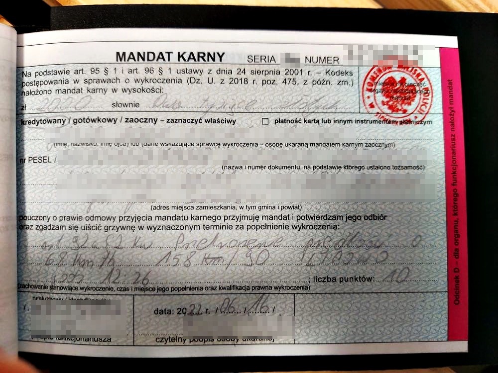 Kierowca otrzymaÅ‚ mandat w wysokoÅ›ci 2 tysiÄ™cy zÅ‚otych za przekroczenie dopuszczalnej prÄ™dkoÅ›ci, a jego konto zasiliÅ‚o 10 punktów.
