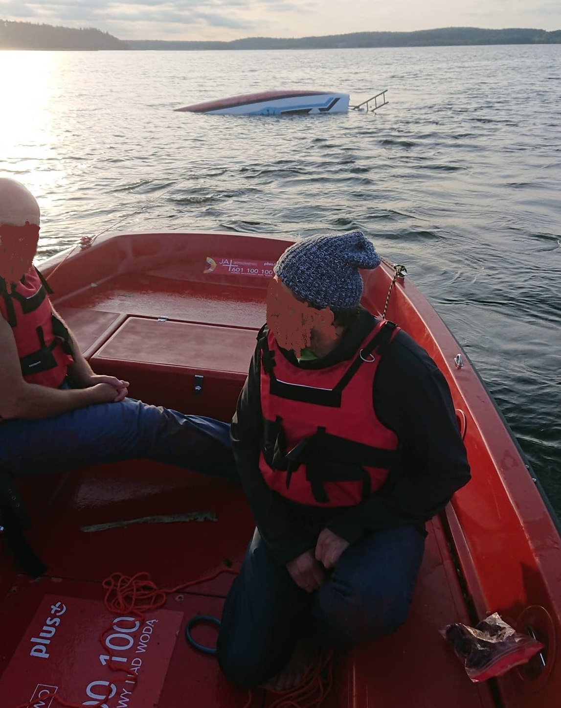 Ratownicy podjÄ™li akcjÄ™ ratunkowÄ…. W akcji ratowniczej pomagali żeglarze, którzy widzieli caÅ‚e zdarzenie. WyciÄ…gniÄ™to żeglarzy z wody i odholowano Å‚ódź na brzeg.