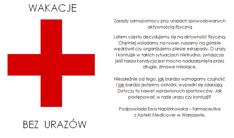 Niezależnie od tego, jak bardzo wzmagamy czujność i jak bardzo jesteśmy ostrożni, wypadki się zdarzają. Dotyczy to nawet wprawionych sportowców. Jak postępować w razie urazu czy kontuzji? Podpowiada Ewa Napiórkowska – farmaceutka z Apteki Medicover w Warszawie.