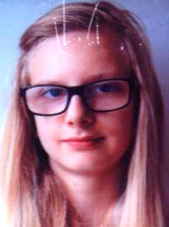 RYSOPIS: Wiek 14lat, wzrost ok. 170 cm, waga 50 kg, szczupła budowa ciała, włosy jasne proste do ramion spięte w kucyk, nosi okulary korekcyjne.