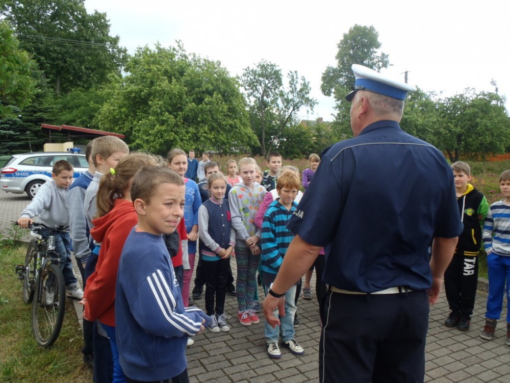 KorzystajÄ…c z okazji mundurowi rozmawiali z uczniami o zagrożeniach mogÄ…cych wystÄ…pić w czasie wakacji oraz radzili w jaki sposób ich unikać.