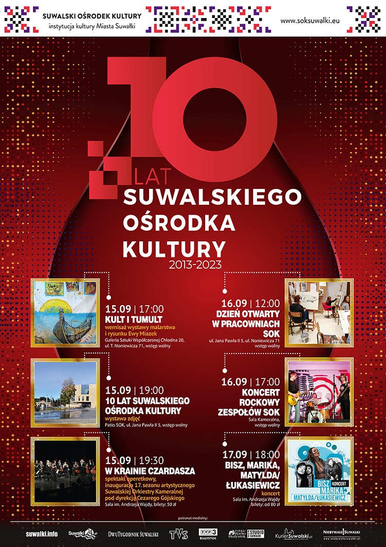 Przez 10 lat, podczas wydarzeÅ„ muzycznych, teatralnych, tanecznych i wielu, wielu innych Suwalski OÅ›rodek Kultury goÅ›ciÅ‚ prawie milion osób. Już we wrzeÅ›niu zaprasza PaÅ„stwa na obchody swojego jubileuszu.