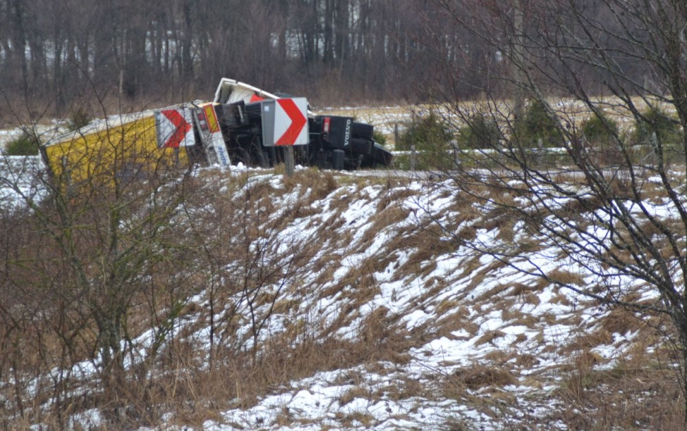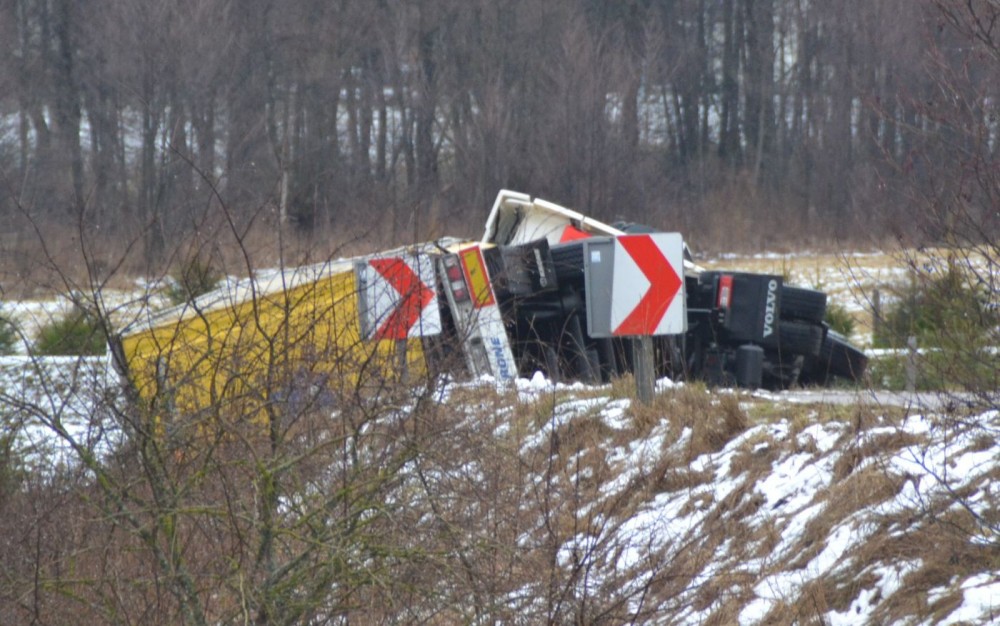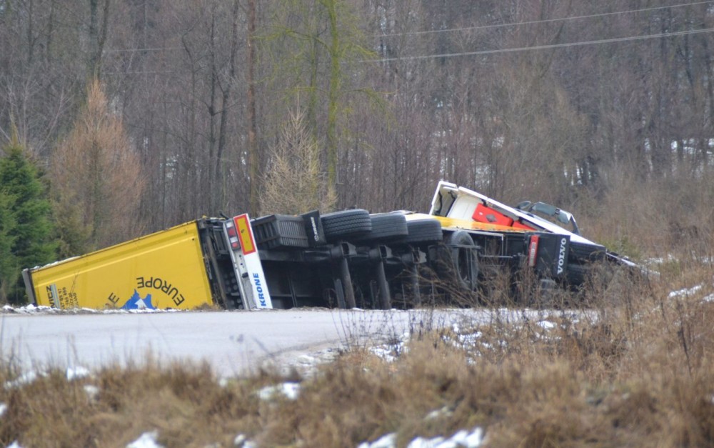 - Z rana była gołoledź i straciłem panowanie nad autem. Było tak ślisko, że na zakręcie samochód przestał reagować - opowiada kierowca ciężarówki.