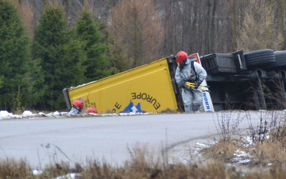 Tir z przyczepą wypełnioną chemikaliami jechał od strony Suwałk do bazy firmy transportowej, gdzie zmienić się miał kierowca. Ładunek to różnego rodzaju preparaty służące do obróbki skór. Trafić miał do odbiorcy w Rosji.