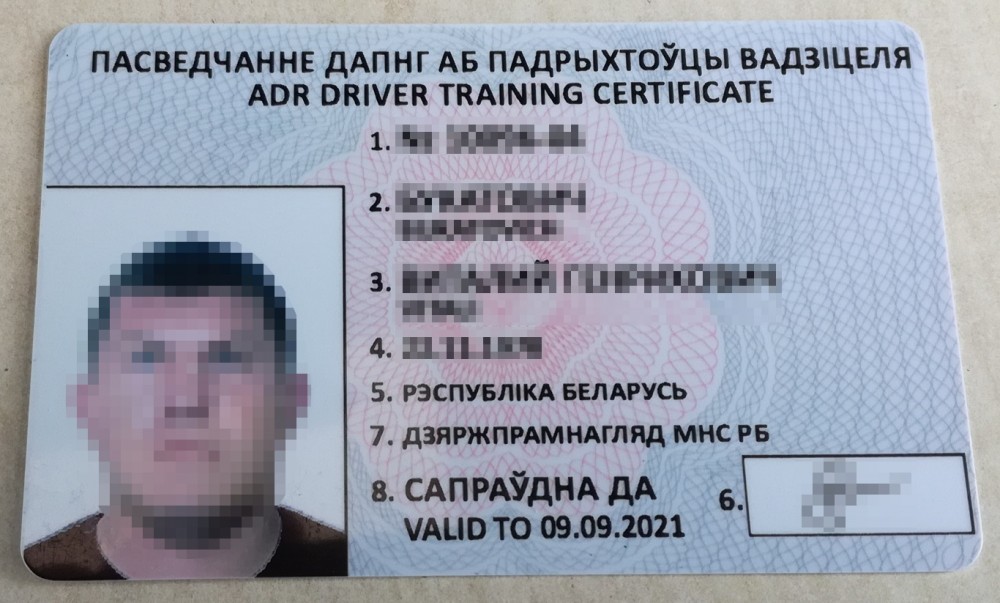 Ciężarówką prowadzoną przez załogę dwuosobową przewożono materiał niebezpieczny UN 1823 – wodorotlenek sodowy, stały. Kierowcy okazali do kontroli zaświadczenia ADR potwierdzające ukończenie szkolenia i zdanie egzaminu uprawniającego do przewozu materiałów niebezpiecznych.