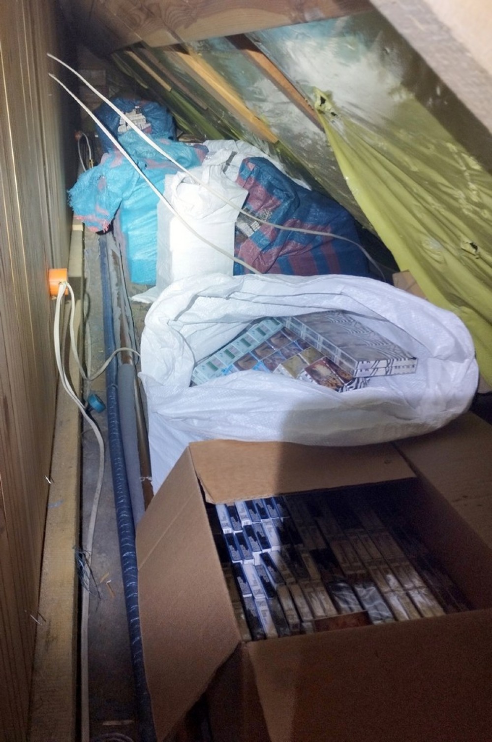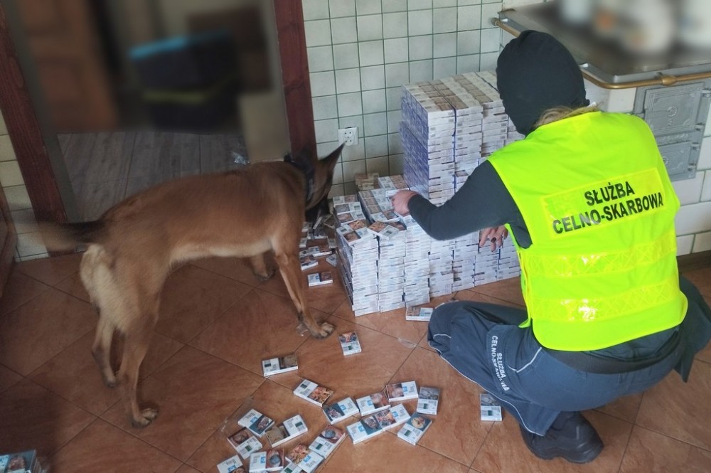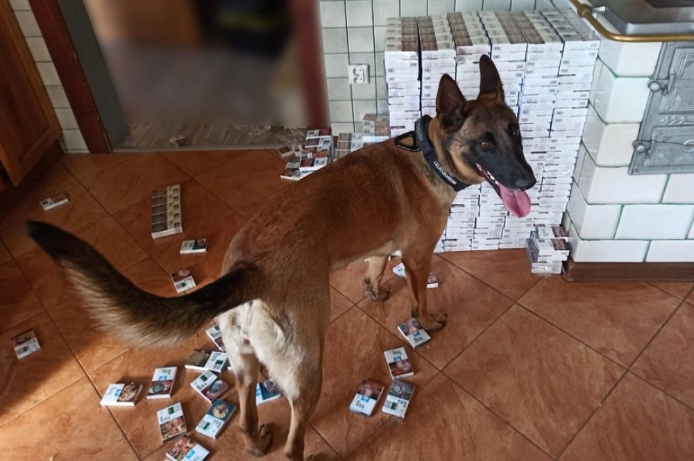Podczas przeszukania domu mężczyzny mundurowi znaleźli 6365 paczek papierosów pochodzÄ…cych z przemytu. Kontrabanda byÅ‚a ukryta m.in. w kotÅ‚owni oraz w skrytkach w schodach i w Å›cianie miÄ™dzy pokojami. W przeszukaniach funkcjonariuszy wspieraÅ‚a Hiena, owczarek belgijski wyszkolony do wykrywania wyrobów tytoniowych.