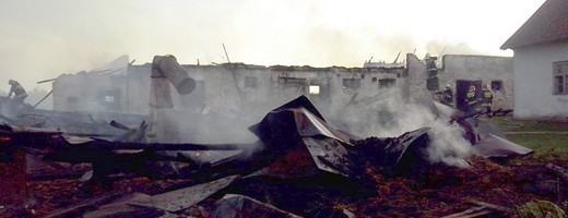 Drewniana stodoła i chlew spłonęły wczoraj w Juchnajciach koło Gołdapi. Przyczyną pożaru było uderzenie pioruna.