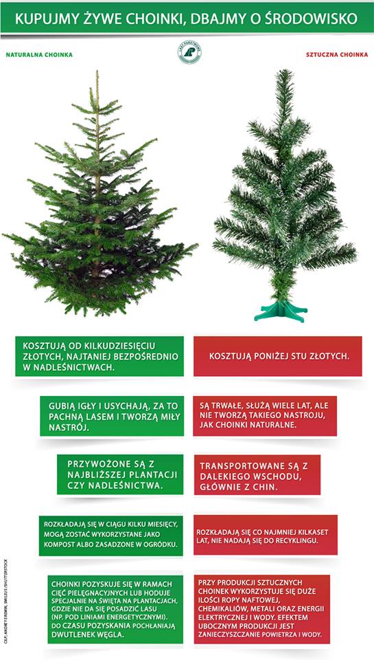 Rocznie na gÅ‚owÄ™ statystycznego Polaka przypada dziÅ› ponad 70 kg zużywanych tworzyw sztucznych. Czy warto dodawać kolejne kilogramy plastiku do swojego otoczenia akurat na Boże Narodzenie? Sztuczne choinki sÅ‚użą nam dÅ‚ugo, ale gdy je wyrzucimy, niektóre zawarte w nich zwiÄ…zki rozkÅ‚adajÄ… siÄ™ przez 400 lat albo dÅ‚użej. Wyprodukowanie plastikowych drzewek wiąże siÄ™ m.in. z wydobyciem i wykorzystaniem nieodnawialnych zasobów ropy naftowej, wymaga również zużycia energii (także w wypadku ich recyclingu). Jak każdy proces przemysÅ‚owy, nie jest to obojÄ™tne dla Å›rodowiska.