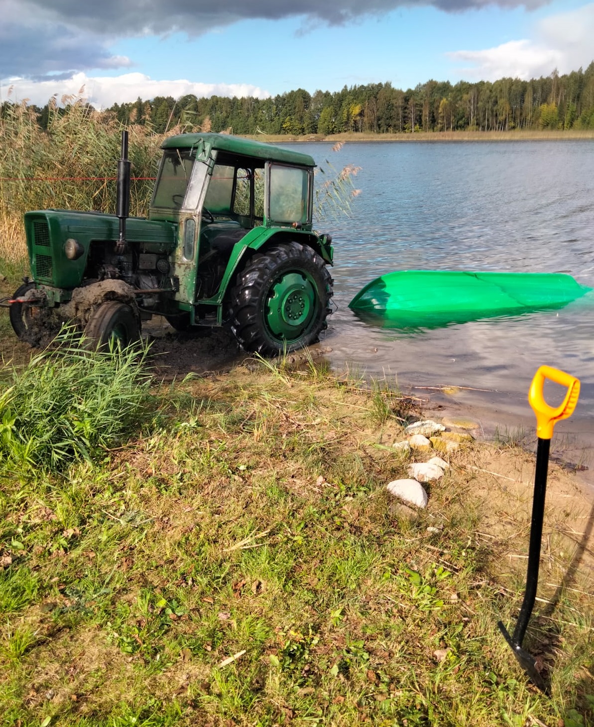 W miniony wtotek, 23 września 2025 roku doszło do niebezpiecznego zdarzenia nad jeziorem – podczas wyciągania łodzi wiosłowej ciągnik rolniczy stoczył się do wody.