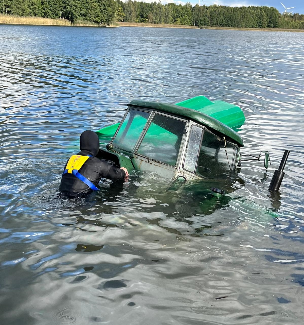Na miejsce wezwano strażaków ze Specjalistycznej Grupy Ratownictwa Wodno Nurkowego w SuwaÅ‚kach, którzy natychmiast podjÄ™li dziaÅ‚ania. Na szczęście kierowca zdążyÅ‚ opuÅ›cić pojazd, zanim ten zostaÅ‚ caÅ‚kowicie zatopiony.