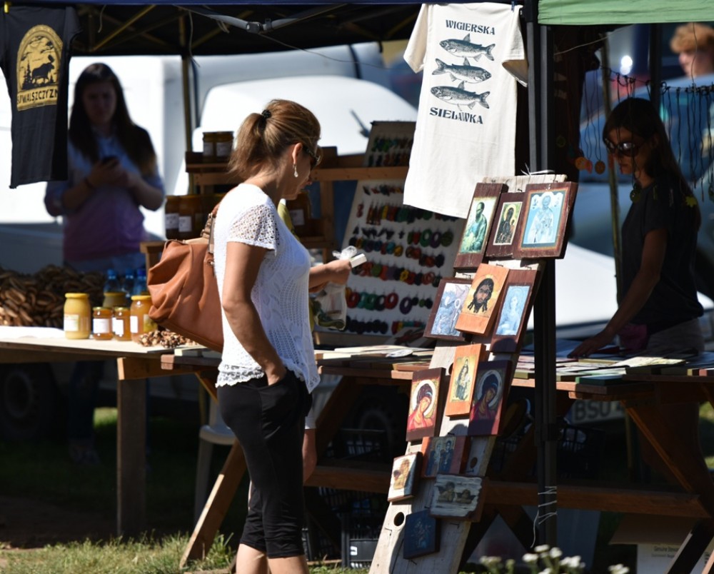 Nie inaczej byÅ‚o w sobotÄ™ w Wigrach, gdzie najwiÄ™kszy w regionie odpustowy jarmark odwiedziÅ‚o i zakupy poczyniÅ‚o kilka tysiÄ™cy osób, gÅ‚ównie wypoczywajÄ…cych nad Wigrami i na Suwalszczyźnie turystów z Polski, ale też z UE i zza wschodniej granicy. A wybierać byÅ‚o w czym: od prawdziwych dzieÅ‚ twórców ludowych, po jarmarcznÄ… tandetÄ™. Każdy coÅ› kupiÅ‚, zjadÅ‚, napiÅ‚ siÄ™. Zadowoleni byli sprzedajÄ…cy i kupujÄ…cy. ByÅ‚a też orkiestra dÄ™ta (z OSP w Sejnach), zabrakÅ‚o za to balkonu, z którego babcia obserwowaÅ‚aby maszerujÄ…cego z puzonem dziadka. ByÅ‚y militaria dla dzieci, miód dla dorosÅ‚ych, a dla wszystkich baloniki na druciku, cukrowa wata i z piernika chata. I tylko żal, że na nastÄ™pny odpustowy jarmark w Wigrach trzeba czekać aż rok.