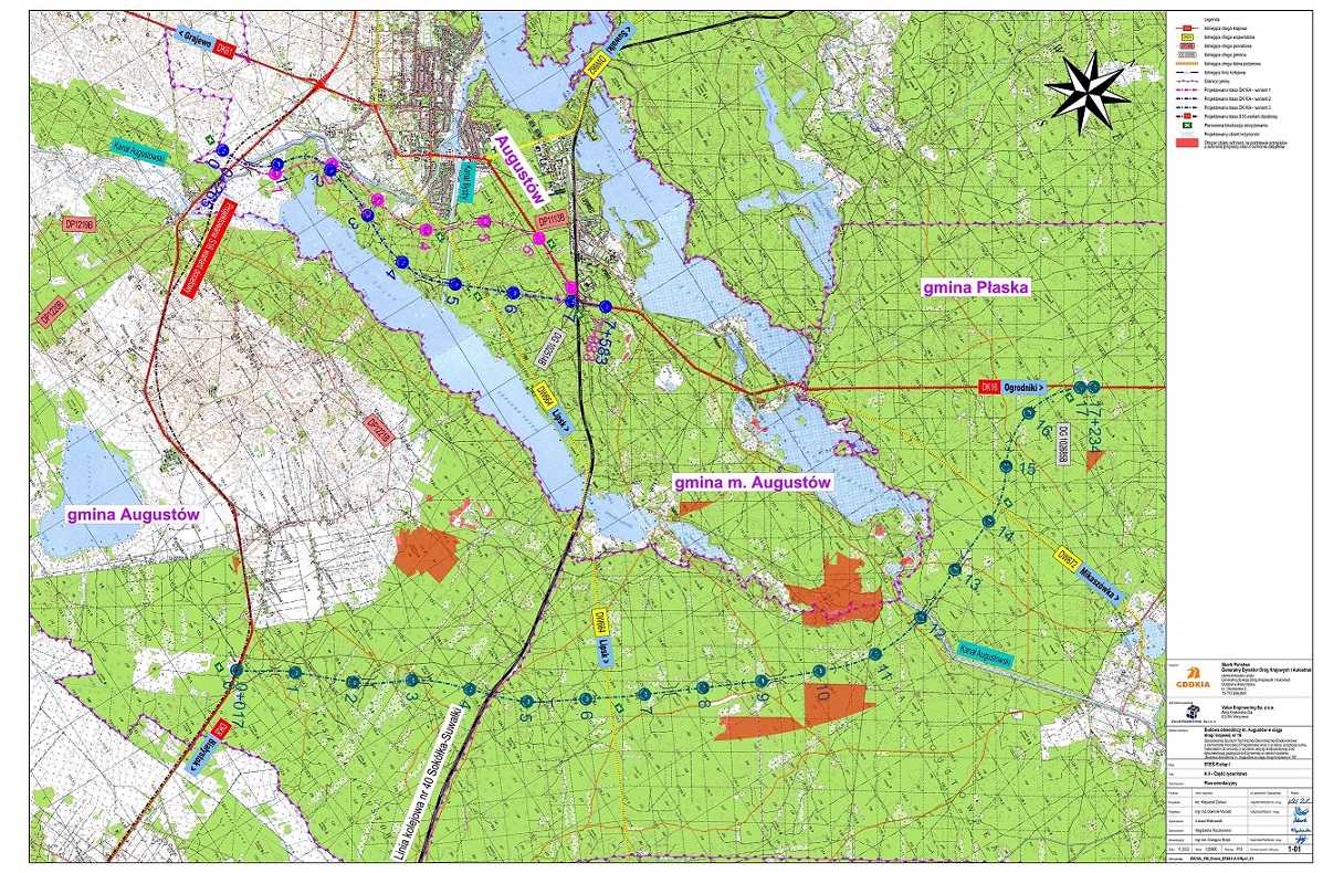 Zgodnie z obowiązującymi przepisami wniosek o wydanie decyzji środowiskowej trafił do burmistrza Augustowa. Wariant wskazany jako preferowany zlokalizowany jest w przeważającej części na terenie miasta Augustów (gmina miejska), a planowana droga ma klasę GP (główna ruchu przyspieszonego).