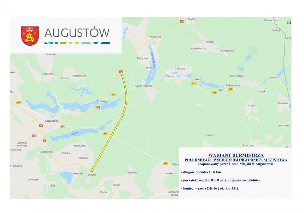 Białostocki Oddział Generalnej Dyrekcji Dróg Krajowych i Autostrad złożył do burmistrza Augustowa wniosek o wydanie decyzji środowiskowej dla południowo-wschodniej obwodnicy w ciągu drogi krajowej nr 16.