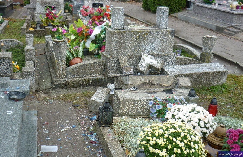 Nieznani sprawcy zdewastowali ponad 100 nagrobków na cmentarzu komunalnym w Ełku. Na miejscu pracuje kilka grup dochodzeniowo – śledczych i technicy kryminalistyki. Policjanci zabezpieczyli nagrania z kliku kamer monitoringu, prowadzą także zakrojone na szeroką skalę działania operacyjne. Wszystko po to, aby ustalić sprawcę bądź sprawców tego zdarzenia.