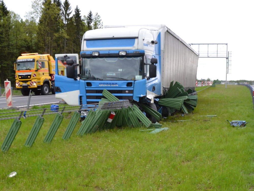 - Ciężarówkę zaczęło ściągać na lewą stronę. kierowca zatrzymał sie na barierkach. To Polak. Był trzeźwy - dodaje Eliza Sawko, oficer prasowy policji w Suwałkach.