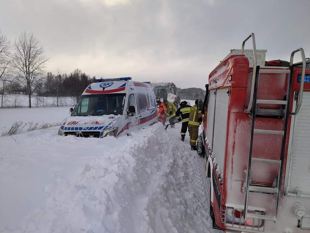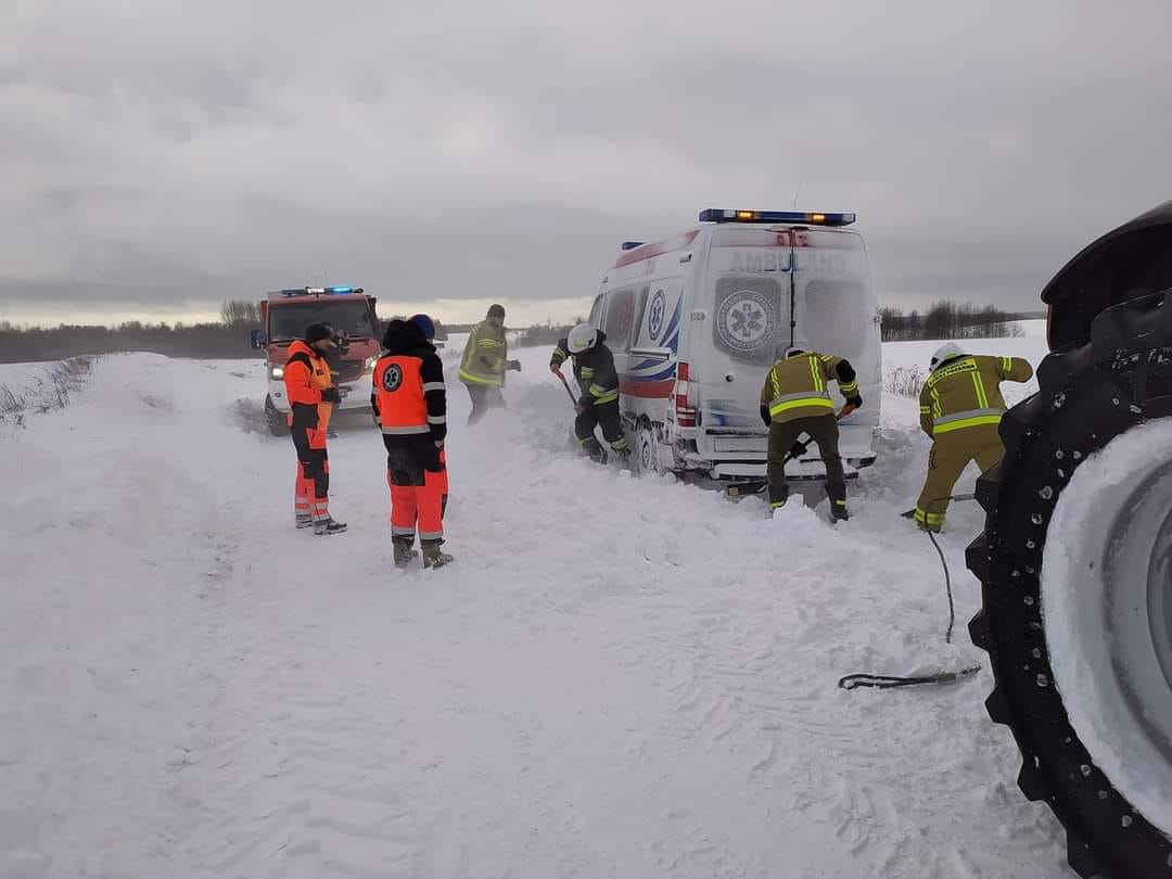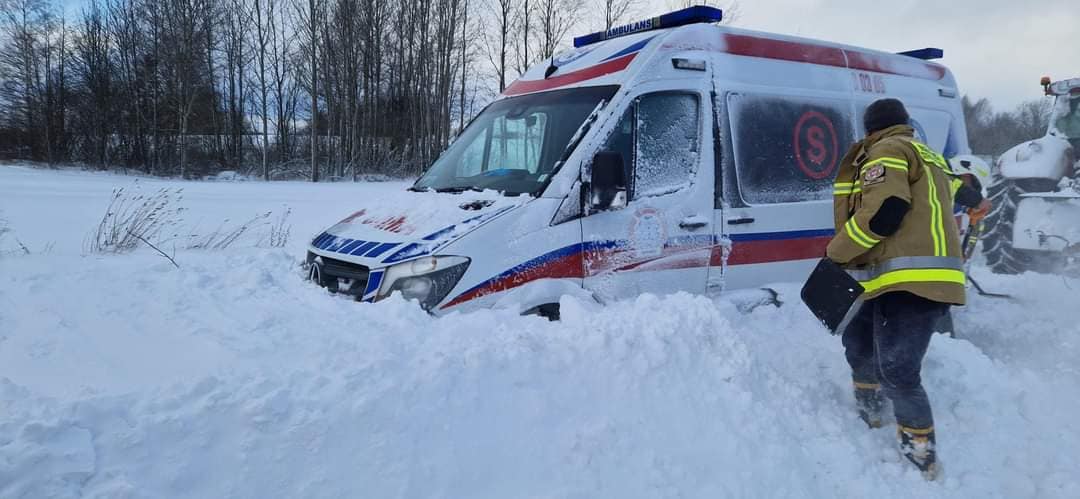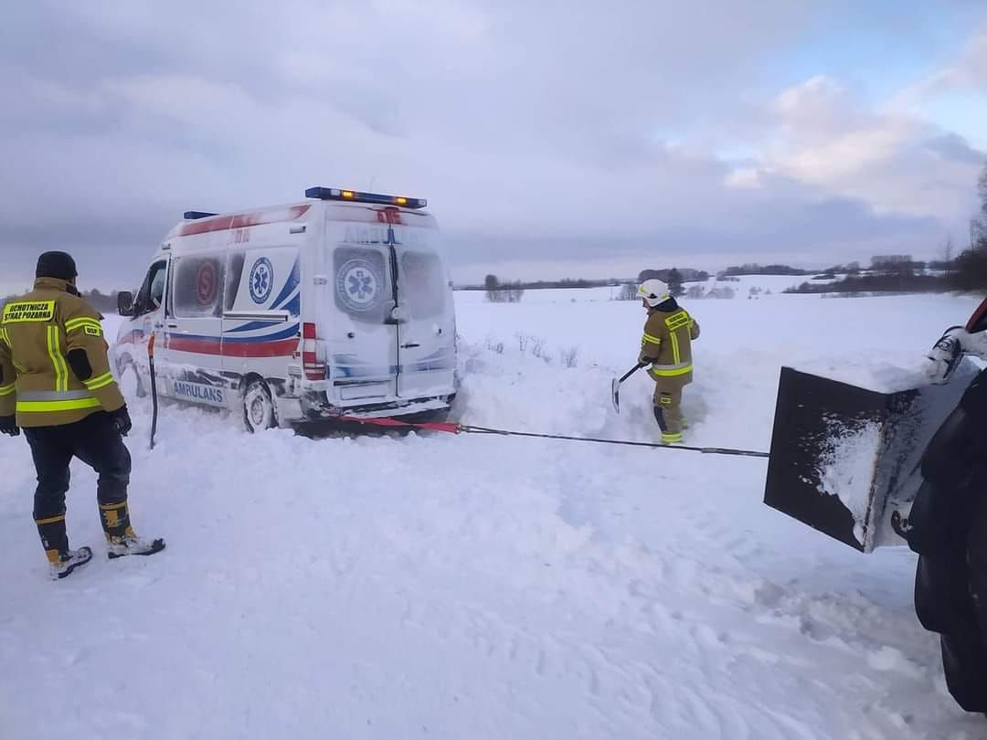 - O godzinie 8.55 otrzymaliśmy zgłoszenie o tym, że karetka jadąca do dziecka utknęła w zaspie na trasie Suwałki Filipów, pomiędzy miejscowościami Zusno i Nowa Dębszczyzna. Na miejscu pojawili się druhowie z OSP Zusno oraz z OSP Filipów, którzy zaczęli odkopywać karetkę. Ojciec dziecka zaproponował, że przywiezie je do karetki ciągnikiem i jednocześnie pomoże wyciągnąć pojazd z zaspy. Niemal w tym samym czasie przyjechał też pług śnieżny – relacjonuje zdarzenie dyżurny suwalskiej Straży Pożarnej.