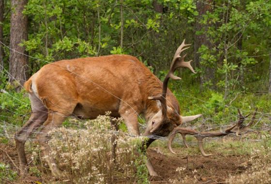 Gdyby nie szybka reakcja ludzi, jego los były przesądzony. Pięcioletni jeleń zaplątał się w druty koło Gib. Bykowi podano środek usypiający i uwolniono go z potrzasku.