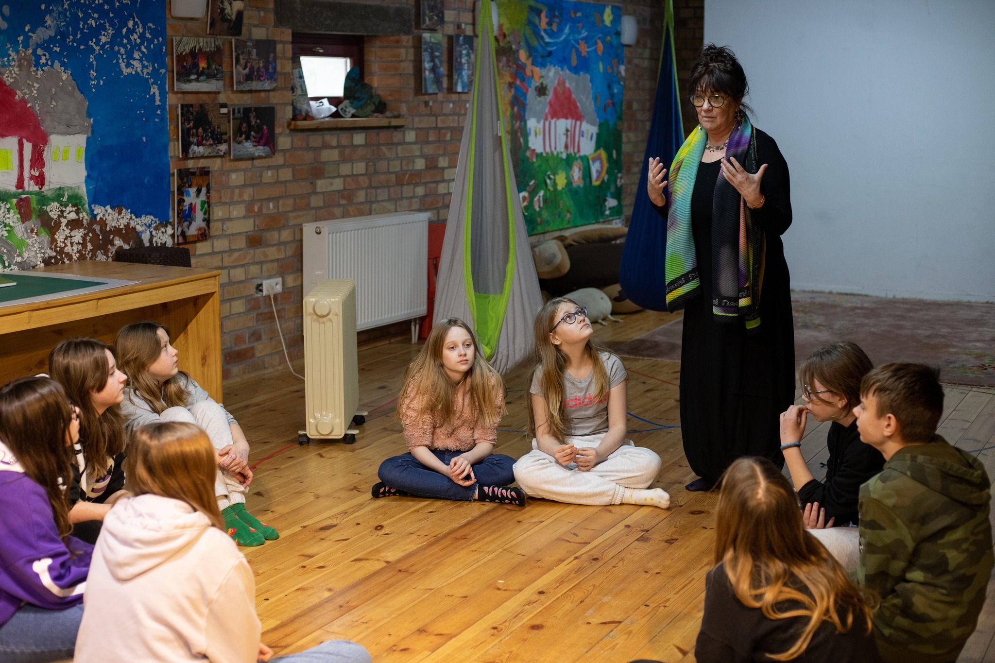 Na fot: Uczniowie ze Szkoły w Krasnowie podczas zajęć teatralnych