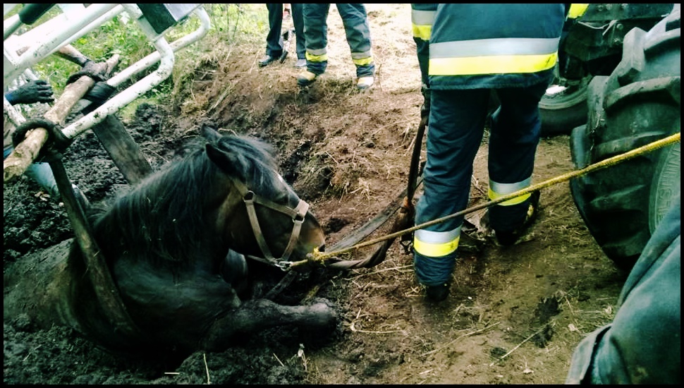 - Po dojeździe na miejsce zdarzenia okazało się, że zwierzę jest głęboko zanurzone -ponad połowa powierzchni swojego ciała. Po około dwóch godzinach działania zakończyły się sukcesem. Przy pomocy pasów, lin, szpadli oraz ciągnika jednego z gospodarzy, udało nam się wydostać konia na powierzchnię – informują strażacy ochotnicy.