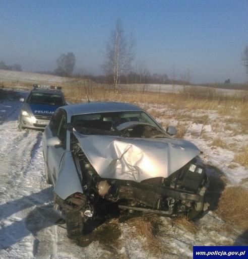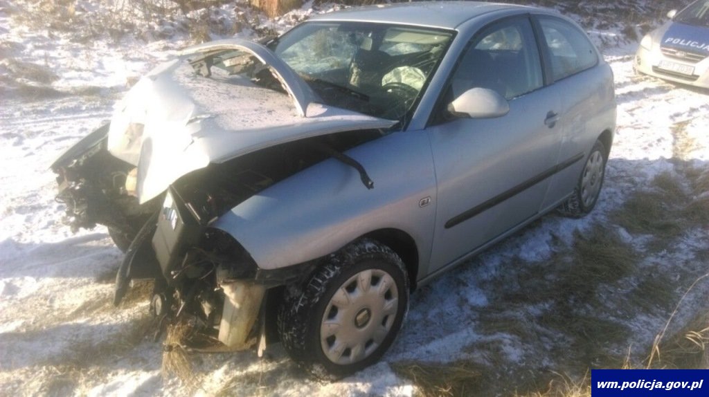 W Å›rodÄ™,  kilka minut po godzinie 9.00, na trasie Boćwinka – GoÅ‚dap w miejscowoÅ›ci RożyÅ„sk Wielki 27-letnia mieszkanka gminy GoÅ‚dap straciÅ‚a panowanie nad pojazdem, wpadÅ‚a w poÅ›lizg i uderzyÅ‚a w przydrożne drzewo. Na miejscu pracowali policjanci oraz pogotowie ratunkowe, które przetransportowaÅ‚o rannÄ… kobietÄ™ do szpitala. Kobieta trafiÅ‚a do szpitala w Olecku. ByÅ‚a trzeźwa, jechaÅ‚a sama.