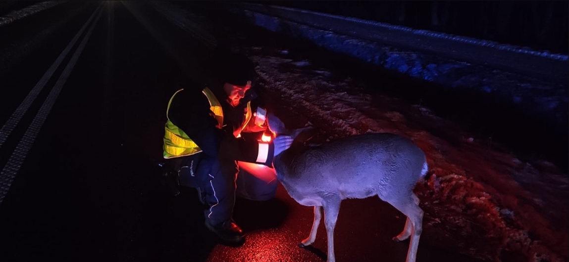 Policjanci Ruchu Drogowego Komendy Powiatowej Policji w Gołdapi uratowali młodego koziołka, który został potrącony w wyniku zdarzenia drogowego.