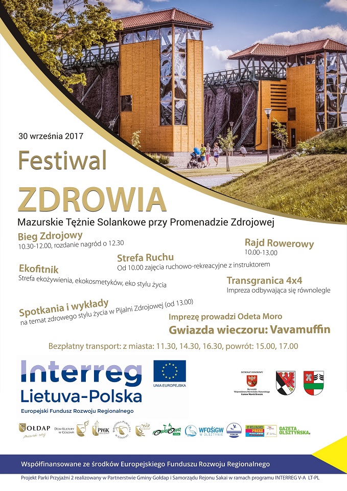 O 19:00 na gÅ‚ównej scenie Festiwalu Zdrowia koncert rozpocznie gwiazda wieczoru - Vavamuffin - topowa grupa grajÄ…ca muzykÄ™ reggae. ImprezÄ… towarzyszÄ…cÄ… festiwalowi bÄ™dzie Transgranica 4x4 czyli MiÄ™dzynarodowy Rajd Samochodów Terenowych. W dotarciu na miejsce imprezy pomocny bÄ™dzie transport z centrum GoÅ‚dapi. BezpÅ‚atne kursy zaplanowano na 11:30, 14:30 i 16:30.