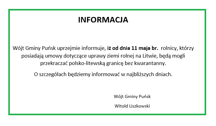 Taką informacje otrzymał także wójt gminy Puńsk Witold Liszkowski, który będzie informował rolników o szczegółach.