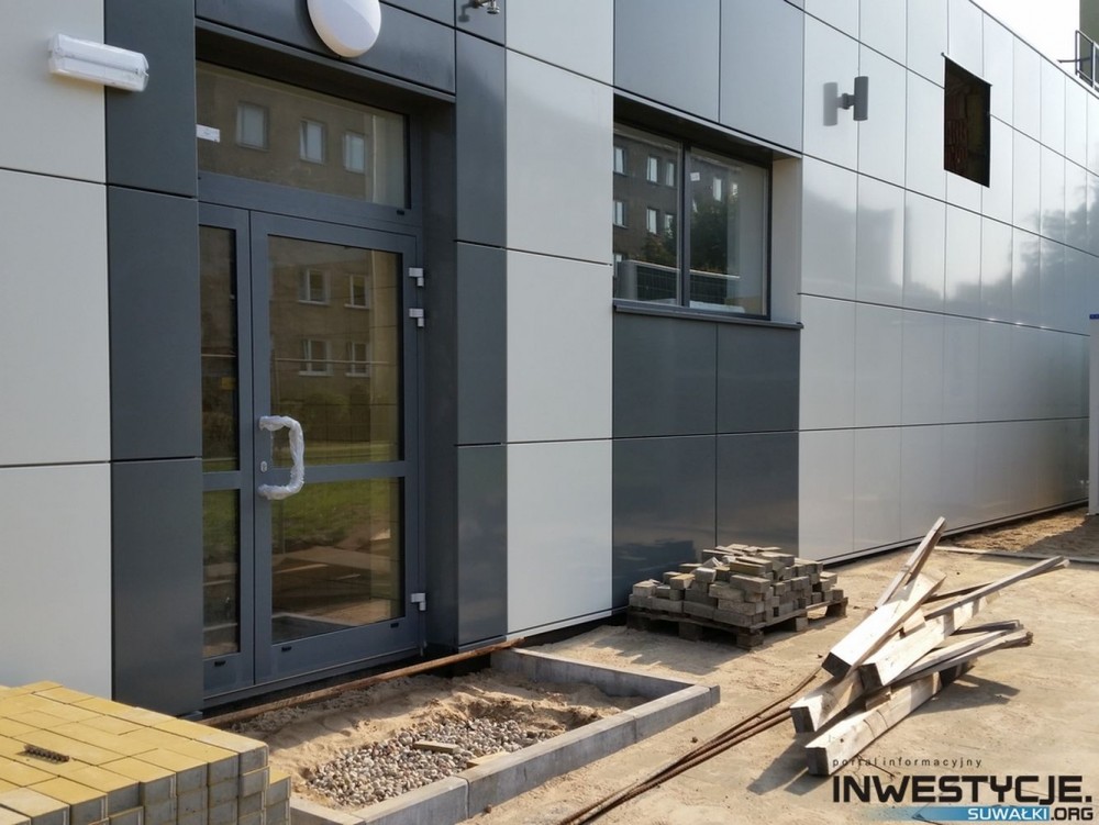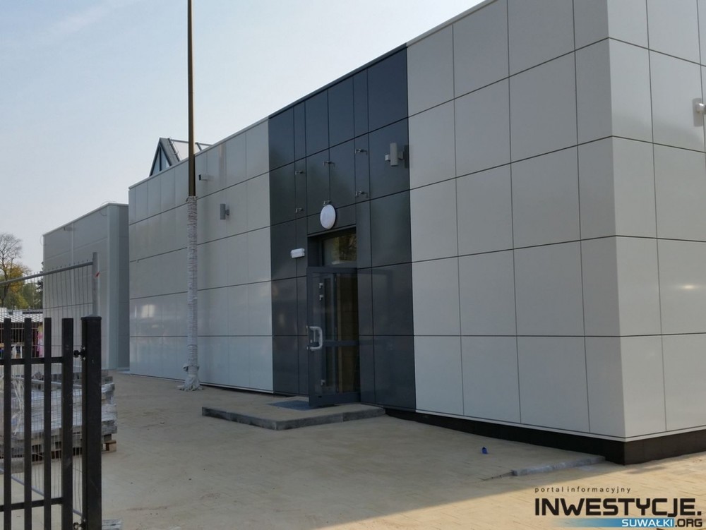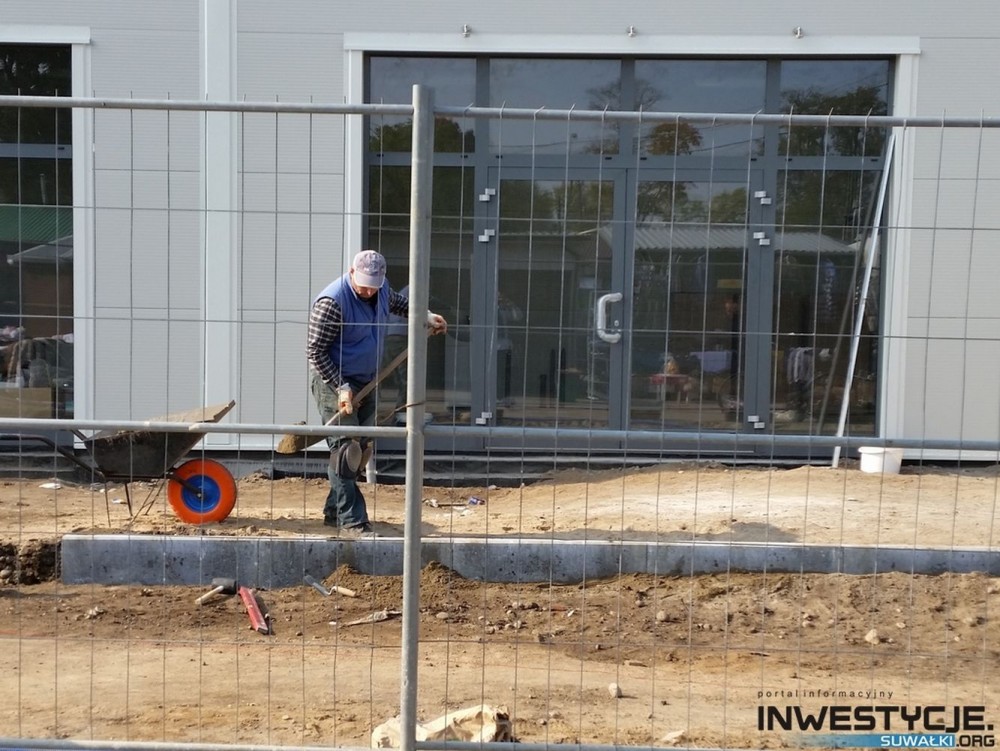 Trwają ostatnie prace wykończeniowe wewnątrz budynku. Robotnicy zajmują się też porządkowaniem terenu wokół hali. Trwa wywóz kontenerów budowlanych.