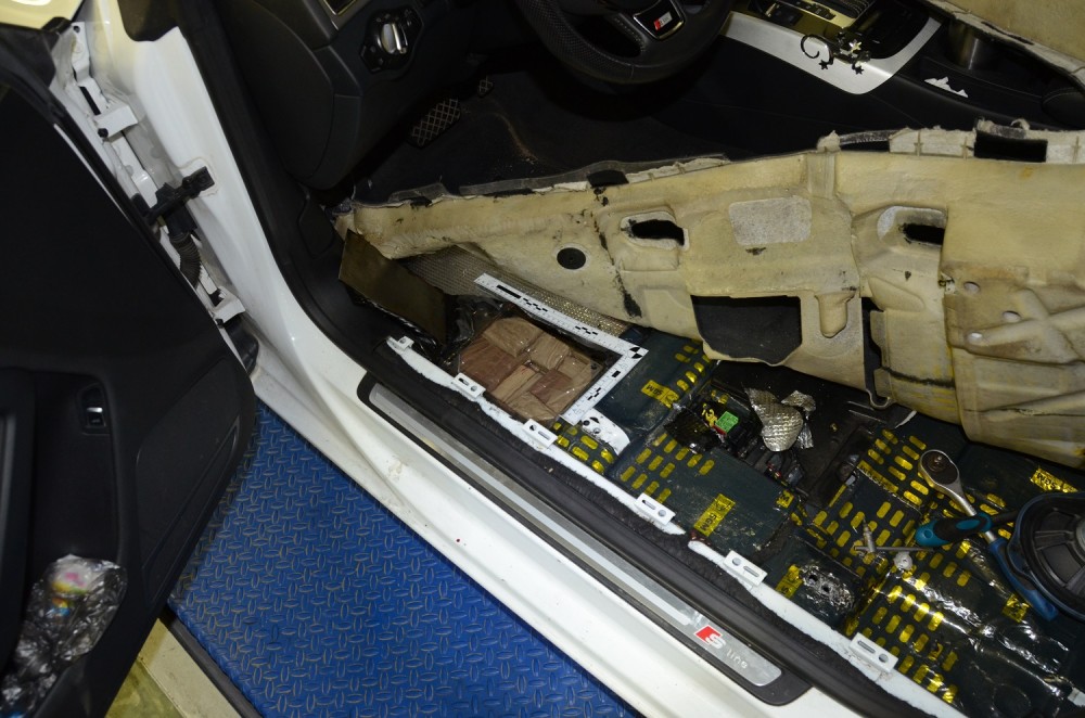 - Pojazd marki Audi A5 z 2012 roku, którym podróżowaÅ‚ cudzoziemiec poddano sprawdzeniu pod kÄ…tem legalnoÅ›ci pochodzenia. W wyniku szczegóÅ‚owej kontroli funkcjonariusze zauważyli w aucie skrytki. Do czynnoÅ›ci użyto psa sÅ‚użbowego, który zaznaczyÅ‚ wnÄ™trze pojazdu jako możliwe miejsce ukrycia narkotyków – informuje Katarzyna Zdanowicz, rzecznik prasowy Podlaskiego OddziaÅ‚u Straży Granicznej.