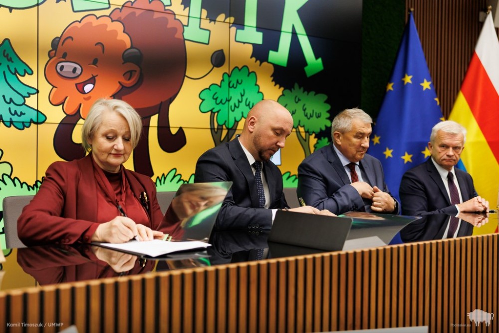 Chcemy zachęcać podlaskie rodziny do wybierania tych placówek do porodu – mówił marszałek Łukasz Prokorym na konferencji, podczas której – wraz z wicemarszałek Wiesławą Burnos i członkiem zarządu Jackiem Piorunkiem – podpisał porozumienia z przedstawicielami trzech wojewódzkich szpitali w tej sprawie.