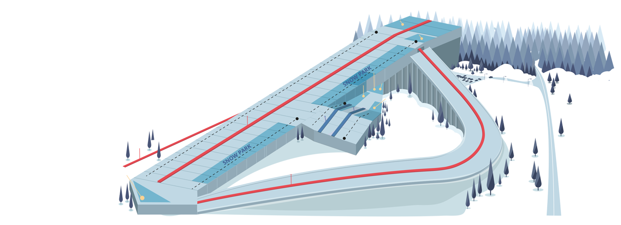 Główna kryta trasa narciarska: szerokość trasy 50 m, długość ponad 460 m