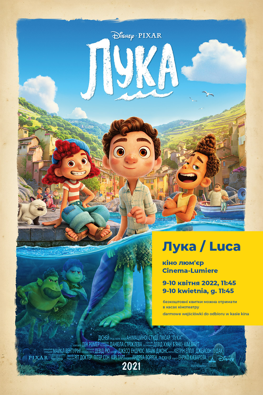 WyÅ›wietlone zostanÄ… bajki Disneya/Pixara „LUCA” z dubbingiem ukraiÅ„skim. BezpÅ‚atne wejÅ›ciówki do odebrania tylko i wyłącznie w kasie Cinema Lumiere. Ilość miejsc ograniczona.