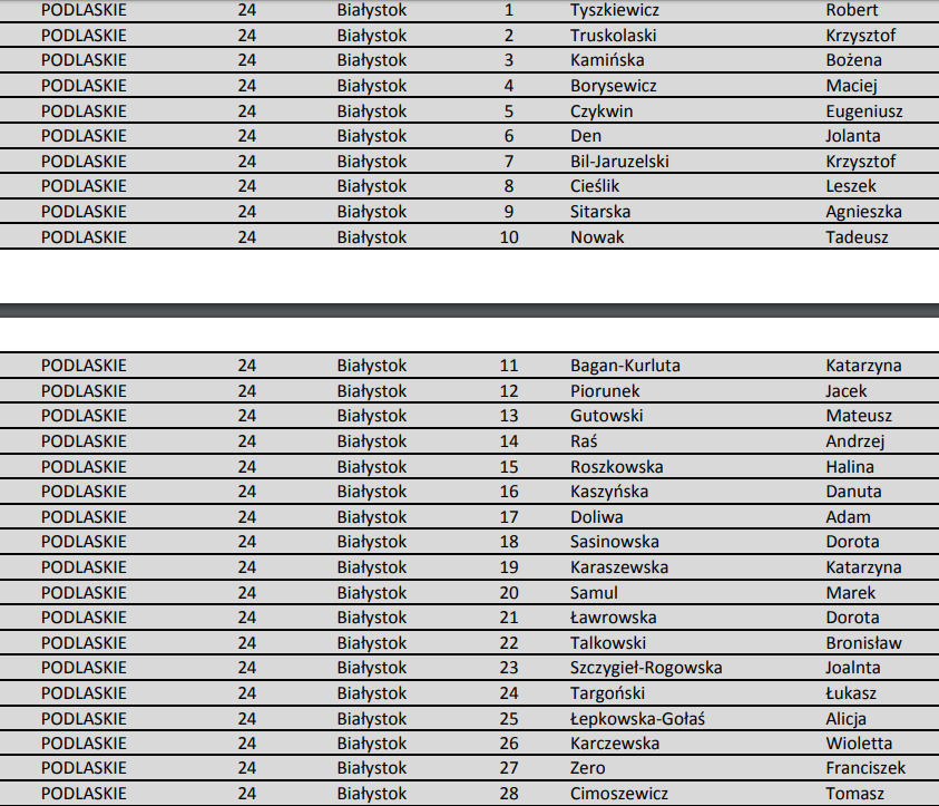 Oprócz Bożeny Kamińskiej na liście znajdują się inni obecni posłowie klubu PO-KO - Robert Tyszkiewicz, Krzysztof Truskolaski i Tomasz Cimoszewicz, a także były poseł Leszek Cieślik z Augustowa.