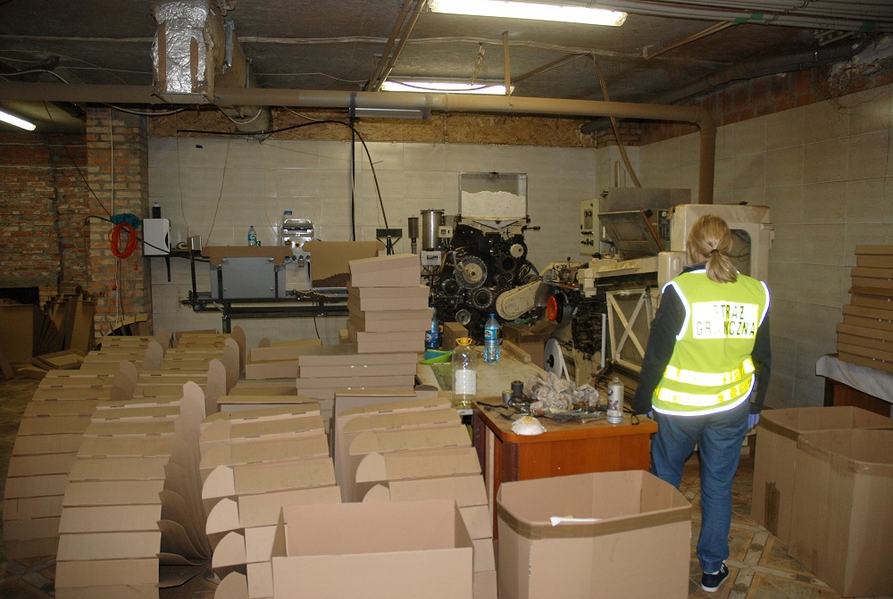 Funkcjonariusze Podlaskiego Oddziału Straży Granicznej ujawnili kompletną linię do produkcji papierosów, krajankę tytoniową i papierosy. Wartość zabezpieczonego towaru oszacowano na ponad 2 mln złotych. W związku ze sprawą zatrzymano ośmiu członków zorganizowanej grupy przestępczej.