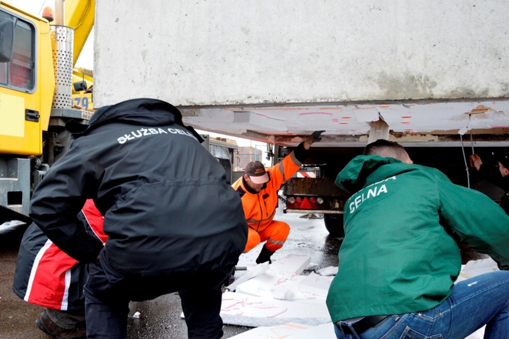 Funkcjonariusze Służby Celnej z Budziska zatrzymali do kontroli polską ciężarówkę. Z dokumentów przedstawionych przez 33-letniego białoruskiego kierowcę scanii wynikało, że w naczepie przewożone jest z Rosji do Polski żelbetowe przęsło mostu. Funkcjonariusze postanowili dokładnie sprawdzić przewożony towar i skierowali pojazd do prześwietlenia promieniami RTG.