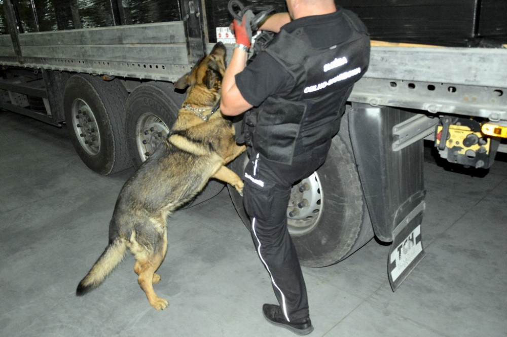- Mundurowi podjÄ™li decyzjÄ™ o sprawdzeniu przewożonego Å‚adunku i rewizji naczepy. Podczas kontroli w której uczestniczyÅ‚ również wyszkolony do wykrywania wyrobów tytoniowych owczarek niemiecki Coda okazaÅ‚o siÄ™, że w caÅ‚ej przestrzeni Å‚adunkowej tira znajdujÄ… siÄ™ palety z kartonami wypeÅ‚nionymi przemycanymi papierosami - informuje RadosÅ‚aw Hancewicz, rzecznik prasowy Izby Administracji Skarbowej w BiaÅ‚ymstoku.