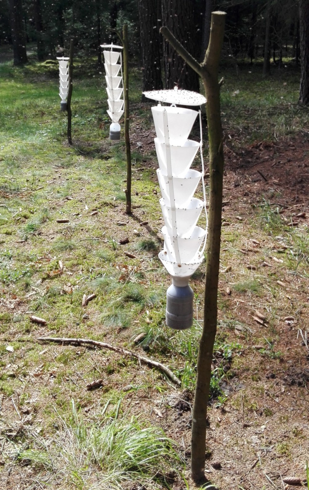 Pułapki feromonowe pełnią ważną rolę w monitorowaniu rozwoju rójki kornika drukarza. Ilość odłowionych korników wskazuje na skalę i dynamikę jego gradacji w Puszczy Białowieskiej. Pułapki feromonowe wykorzystują zainstalowaną w nich nasączoną zapachem płytkę (feromon) do zwabiania lub odstraszania owadów. Poprzez odłowienie korników w pułapki feromonowe nie można jednak zapobiec gradacji. Odłowione w nich osobniki, to znikoma ilość w porównaniu z liczbą korników, które zimują w ściółce i pod korą drzew.