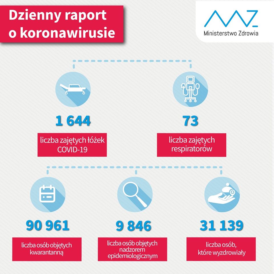 Liczba zakażonych koronawirusem w Polsce wynosi 41 162. Zmarły 1 642 osoby, wyzdrowiało 31 139.