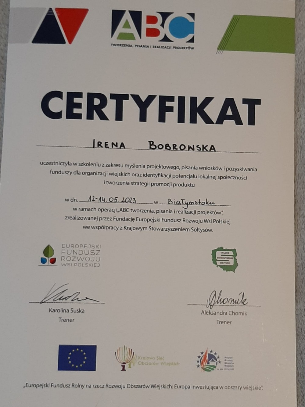 Nieco wczeÅ›niej panie uczestniczyÅ‚y w szkoleniu pn. „ABC tworzenia, pisania i realizacji projektów". Po zajÄ™ciach otrzymaÅ‚y specjalne certyfikaty.